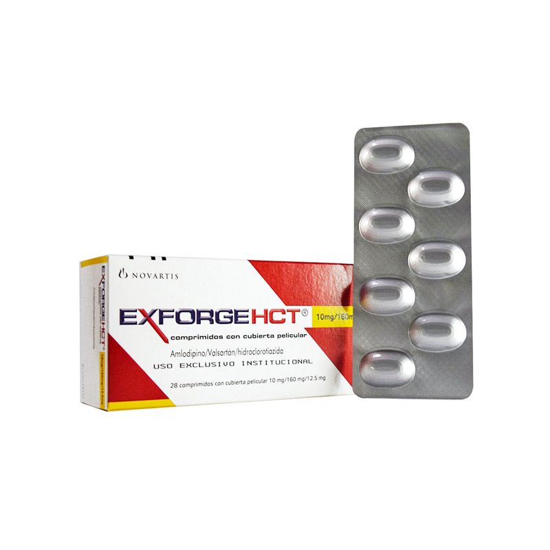 Exforge Hct Amlodipino 10 Mg Hidroclorotiazida 12.5 Mg Valsartan 160 Mg Caja X 28 Tabletas Siegfried. Este producto es un medicamento, no exceder su consumo. Leer indicaciones y contraindicaciones, si los síntomas persisten consultar al médico. Venta bajo fórmula médica.
