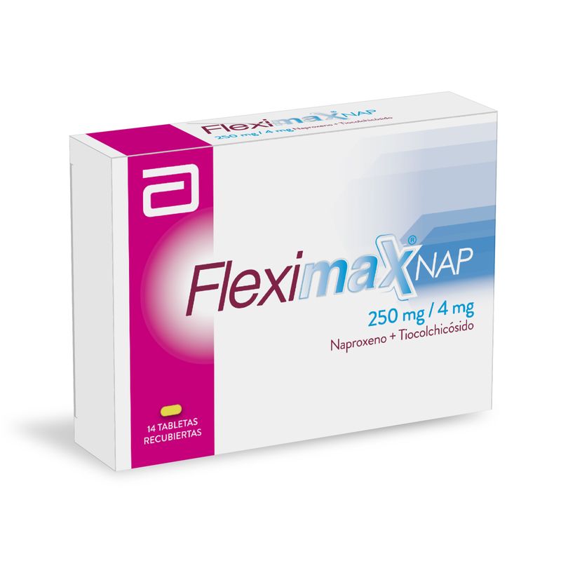 Fleximax Naproxeno 250 Mg Tiocolchicosido 4 Mg Caja X 14 Tabletas Lafrancol. Este producto es un medicamento, no exceder su consumo. Leer indicaciones y contraindicaciones, si los síntomas persisten consultar al médico. Venta bajo fórmula médica.