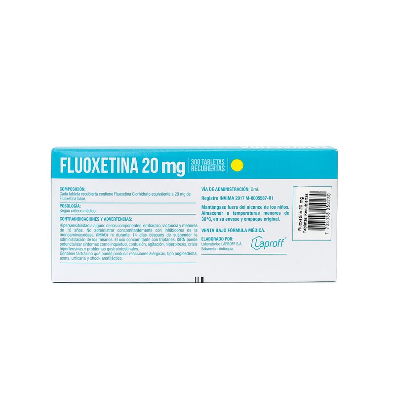 Fluoxetina 20 Mg Caja X 300 Tabletas Laproff