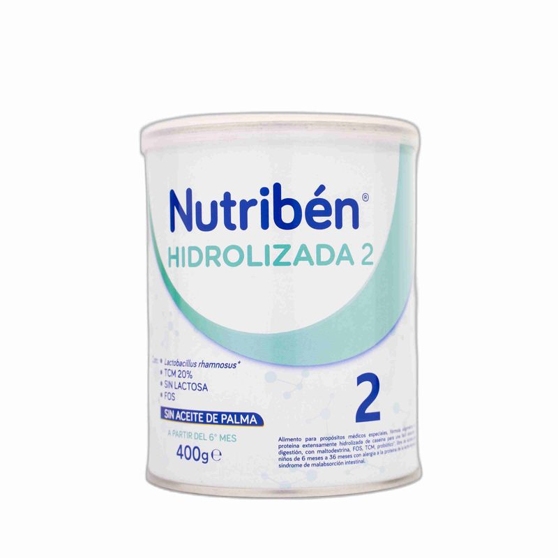 Fórmula Nutribén Hidrolizada 2, presentación de 400 gramos, ideal para bebés con alergias alimentarias.
