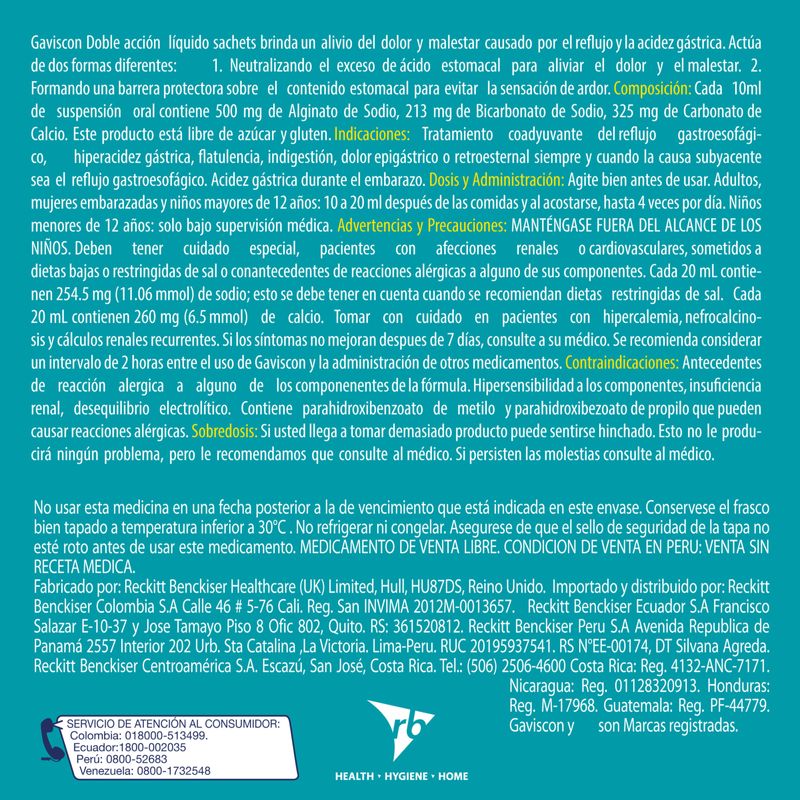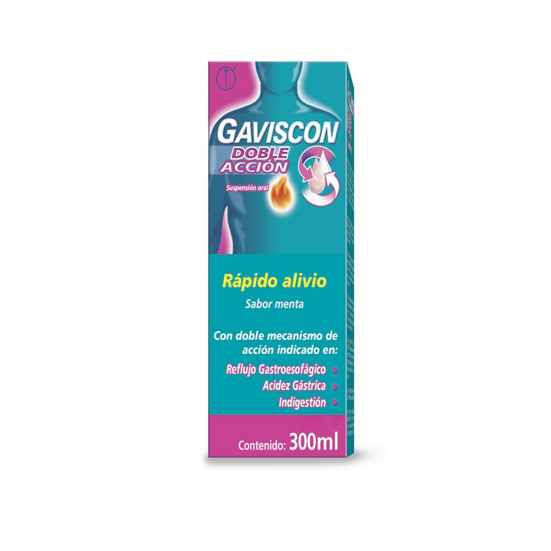 Gaviscon Doble Acción Frasco X 300 Ml Suspensión Oral Health. Este producto es un medicamento, no exceder su consumo. Leer indicaciones y contraindicaciones, si los síntomas persisten consultar al médico. Venta bajo fórmula médica.