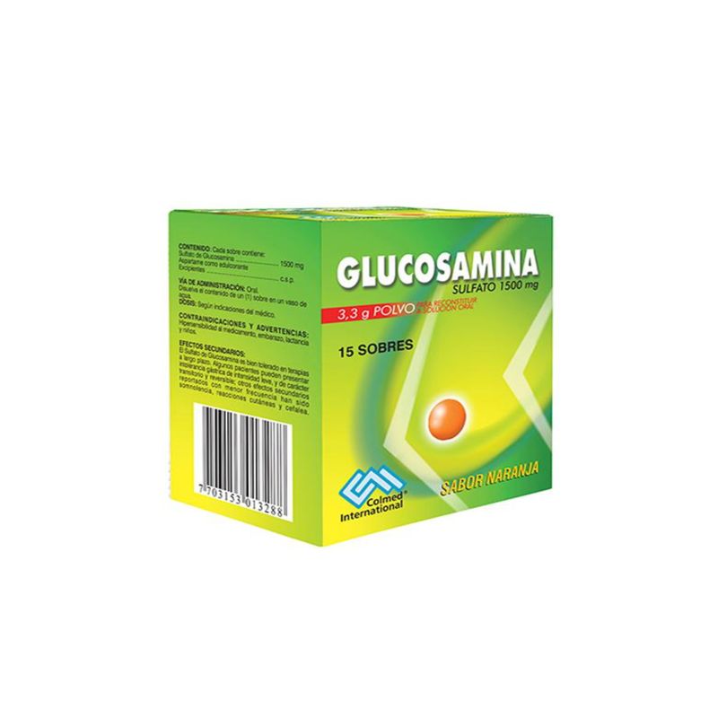 Glucosamina Polvo 1500 Mg Caja X 15 Sobre Colmed. Este producto es un medicamento, no exceder su consumo. Leer indicaciones y contraindicaciones, si los síntomas persisten consultar al médico. Venta bajo fórmula médica.