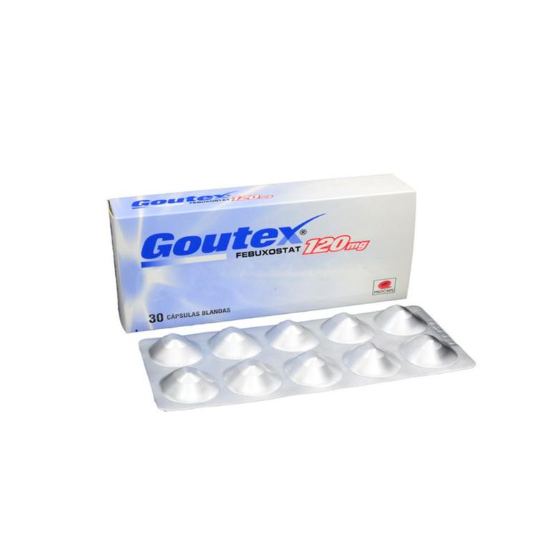 Goutex Febuxostat 120 Mg Caja X 30 Cápsulas Blanda Procaps. Este producto es un medicamento, no exceder su consumo. Leer indicaciones y contraindicaciones, si los síntomas persisten consultar al médico. Venta bajo fórmula médica.