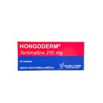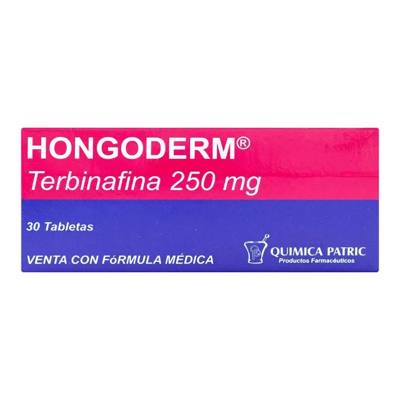 Hongoderm Terbinafina 250 Mg Caja X 30 Tabletas Química Patric. Este producto es un medicamento, no exceder su consumo. Leer indicaciones y contraindicaciones, si los síntomas persisten consultar al médico. Venta bajo fórmula médica.