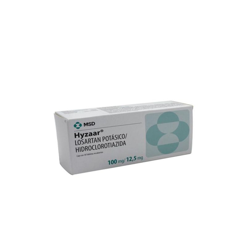 Hyzaar Caja X 30 Tabletas Losartán Potásico 100 Mg Hidroclorotiazida 12.5 Mg Organon. Este producto es un medicamento, no exceder su consumo. Leer indicaciones y contraindicaciones, si los síntomas persisten consultar al médico. Venta bajo fórmula médica.