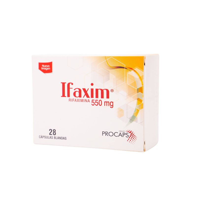 Ifaxim Rifaximina 550 Mg Caja X 28 Cápsulas Procaps. Este producto es un medicamento, no exceder su consumo. Leer indicaciones y contraindicaciones, si los síntomas persisten consultar al médico. Venta bajo fórmula médica.
