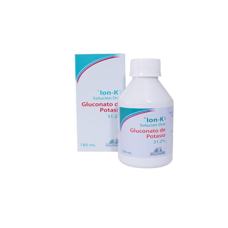 Ion-K Solución Oral 31.2%, en frasco de 180 ml de Anglopharma, es un