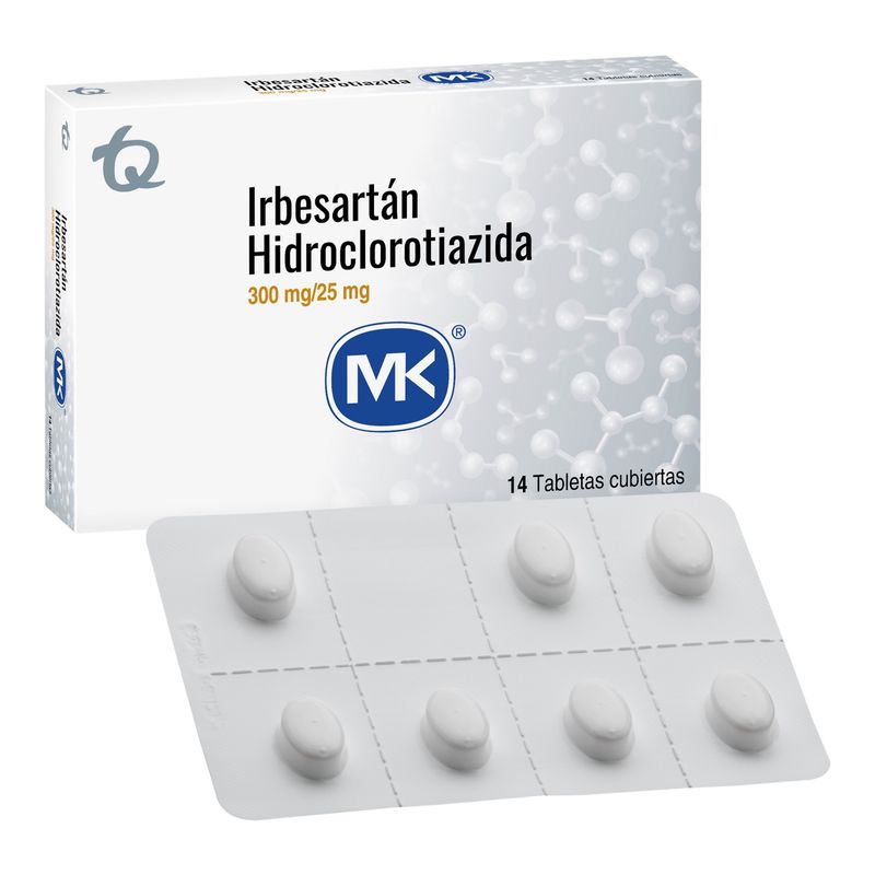 Irbesartán Hidroclorotiazida 300Mg + 25Mg Caja X 14 Tabletas Mk. Este producto es un medicamento, no exceder su consumo. Leer indicaciones y contraindicaciones, si los síntomas persisten consultar al médico. Venta bajo fórmula médica.