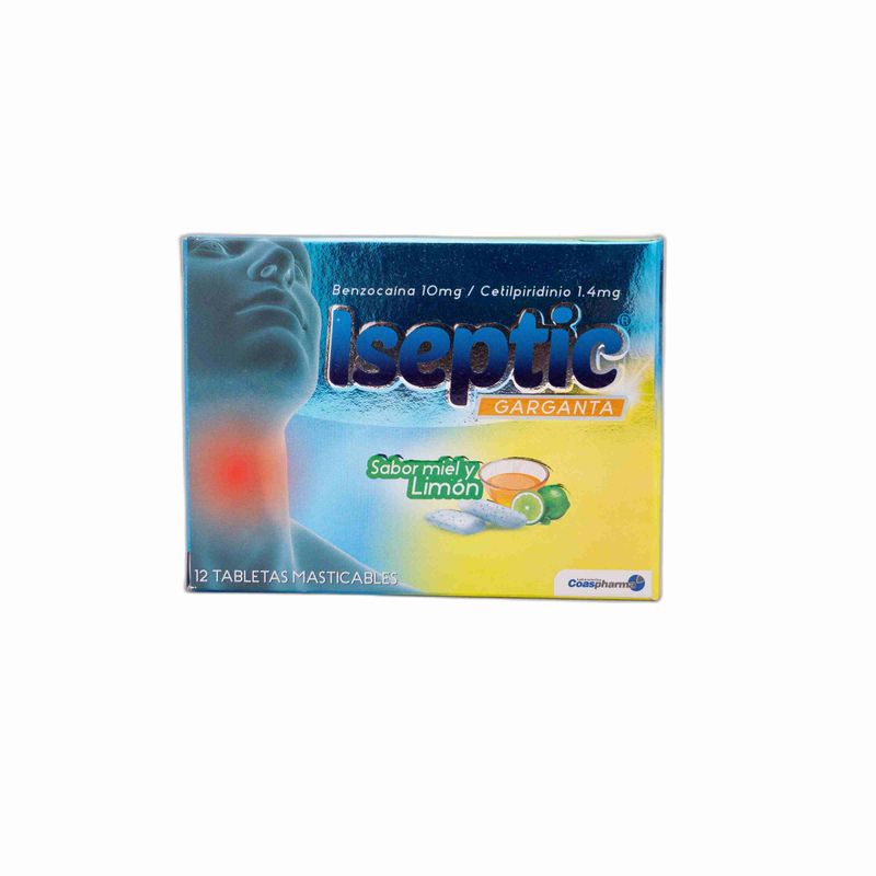 Iseptic Garganta Sabor Miel Limón Caja X 12 Tabletas Coaspharma. Este producto es un medicamento, no exceder su consumo. Leer indicaciones y contraindicaciones, si los síntomas persisten consultar al médico.