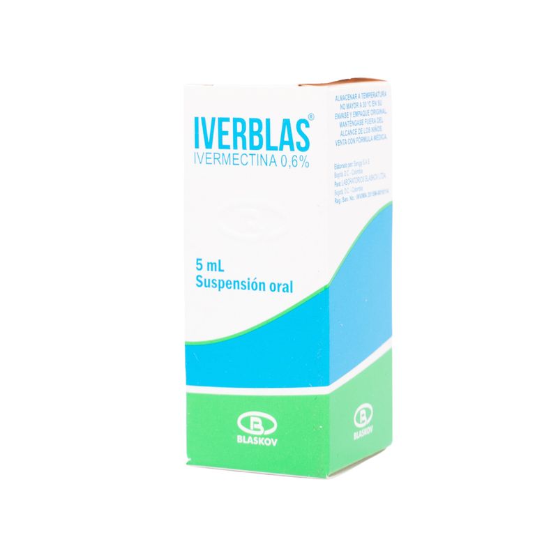 Iverblas Ivermectina 6 Mg Frasco X 5 Ml Suspensión Oral Blaskov. Este producto es un medicamento, no exceder su consumo. Leer indicaciones y contraindicaciones, si los síntomas persisten consultar al médico. Venta bajo fórmula médica.