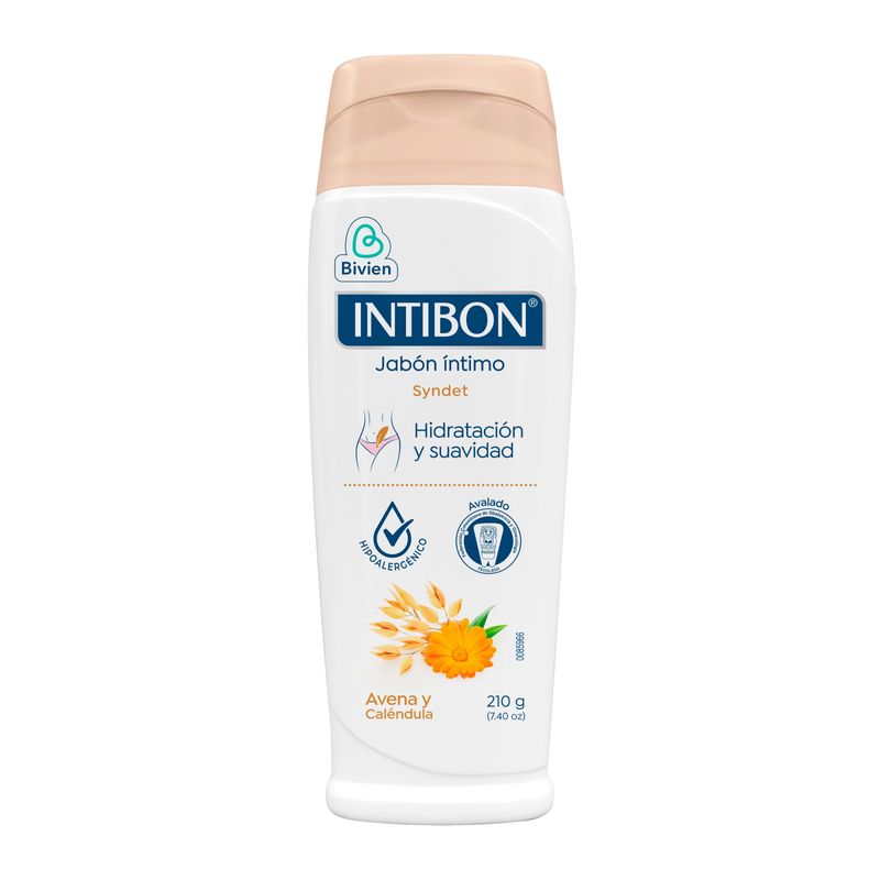 Jabón Íntimo Intibon Avena y Caléndula en frasco de 210 gr. Su fórmula enriquecida con extractos naturales ayuda a mantener la frescura y el bienestar, respetando el pH de tu zona íntima.