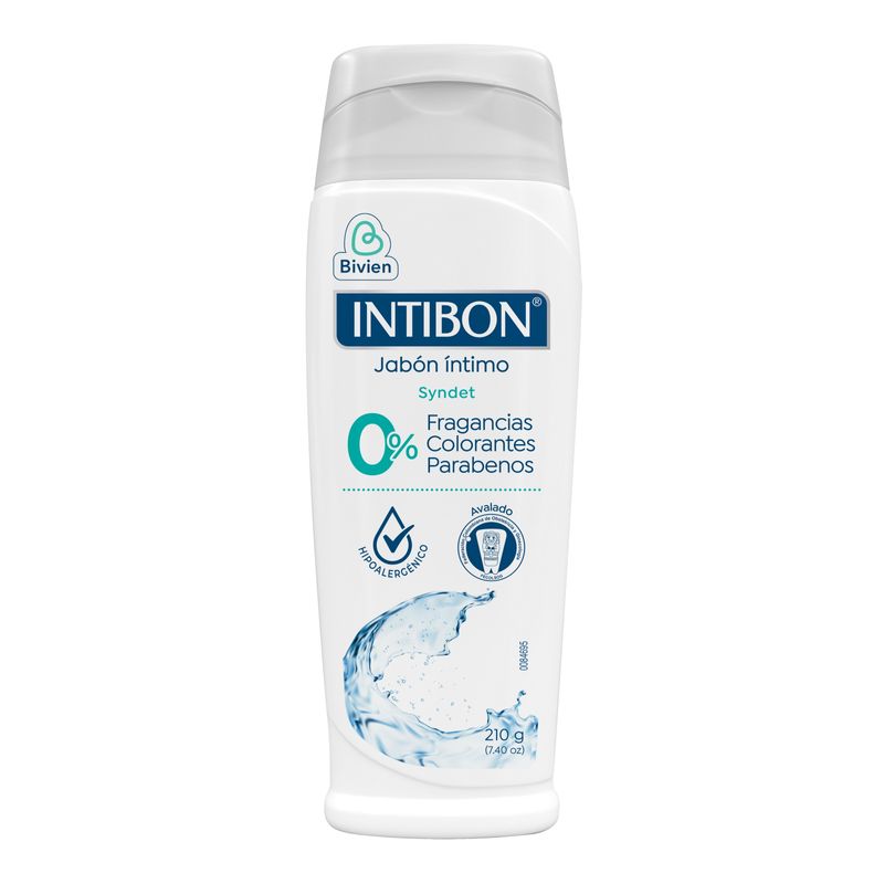Jabón Íntimo Intibon Cero en frasco de 210 gr. Su fórmula neutra y libre de aditivos innecesarios proporciona una limpieza suave y segura, perfecta para mantener la salud y el confort de tu zona íntima.