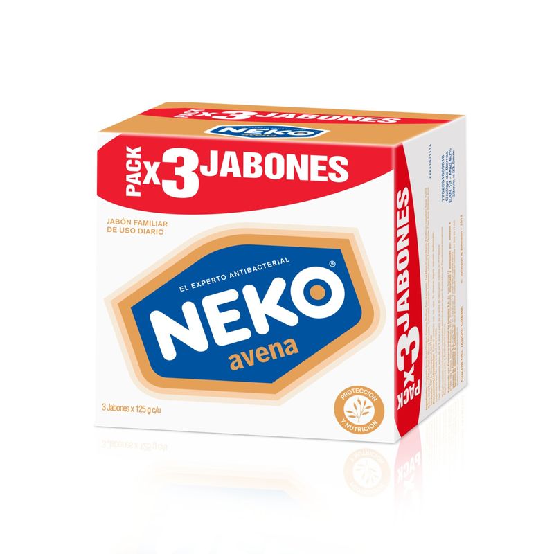 Jabón Neko Avena 3 Barras X 125 Gr Johnson. Diseñado para limpiar y cuidar tu piel de manera efectiva. Formulados con ingredientes de alta calidad, ofreciendo una experiencia de limpieza suave y nutritiva, dejando la piel fresca, hidratada y con un aroma agradable.