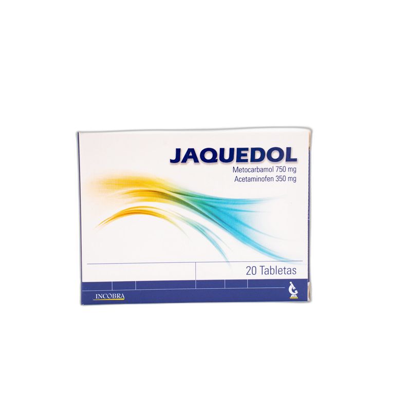 Jaquedol Acetaminofén 350 Mg Metocarbamol 750 Mg Caja X 20 Tabletas Incobra. Este producto es un medicamento, no exceder su consumo. Leer indicaciones y contraindicaciones, si los síntomas persisten consultar al médico. Venta bajo fórmula médica.