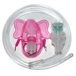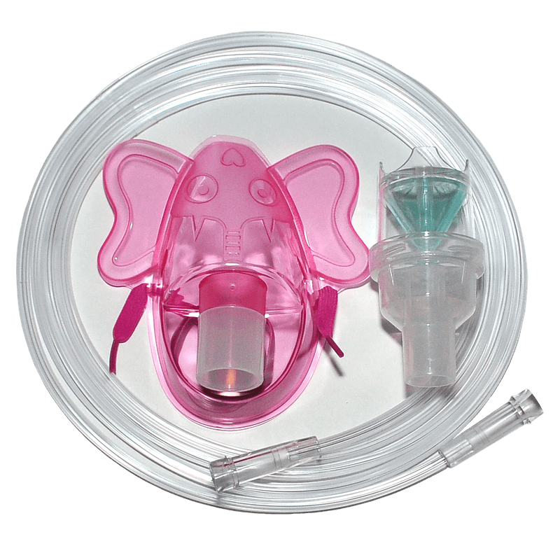 Kit de nebulización pediátrica, color rosado, incluye máscara en forma de elefante.