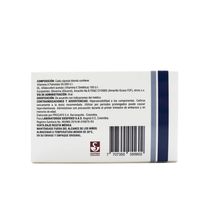Lifertron E Vitamina Palmitato 29.41 Mg Vitamina 150 Mg Caja X 30 Cápsulas Siegfried. Este producto es un medicamento, no exceder su consumo. Leer indicaciones y contraindicaciones, si los síntomas persisten consultar al médico. Venta bajo fórmula médica.