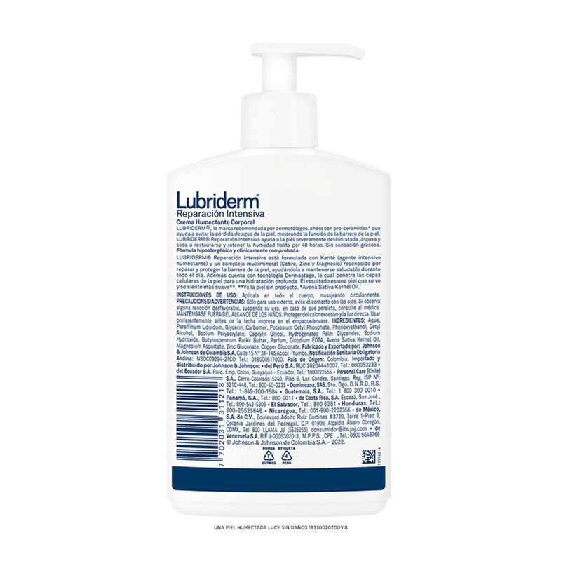 Lubriderm reparacion intensiva ayuda a la piel severamente deshidratada, aspera y seca a restaurarse y retener la humedad durante 24 horas, gracias a su innovadora formula con capsulas de liberacion controlada generadas por novosomas de karite a lo largo del dia.