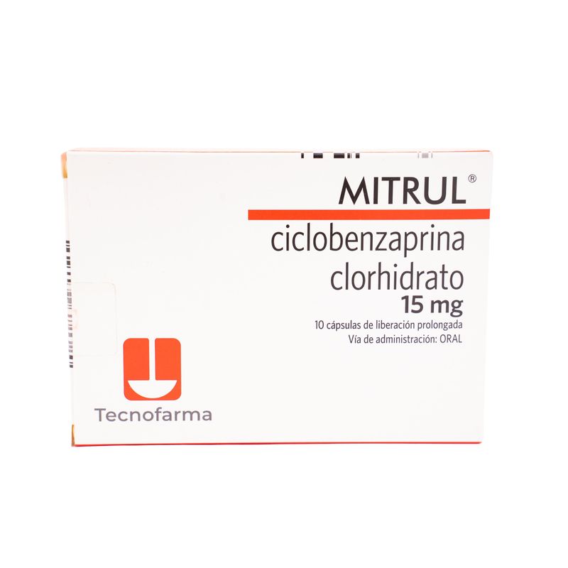 Mitrul Ciclobenzaprina 15 Mg Caja X 10 Cápsulas Tecnofarma. Este producto es un medicamento, no exceder su consumo. Leer indicaciones y contraindicaciones, si los síntomas persisten consultar al médico. Venta bajo fórmula médica.