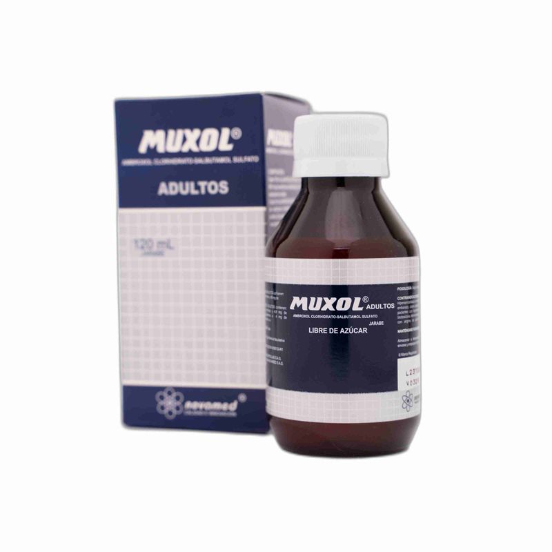 Muxol Adulto Sin Azúcar Ambroxol Clorhidrato 30 Salbutamol Sulfato 4 Mg/5Ml Jarabe Frasco X 120 Ml Novamed. Este producto es un medicamento, no exceder su consumo. Leer indicaciones y contraindicaciones, si los síntomas persisten consultar al médico. Venta bajo fórmula médica.