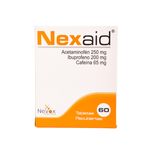 Nexaid Ibuprofeno 200 Mg + Acetaminofén 250 Mg + Caféina 65 Mg Caja X 60 Tabletas Nevox. Este producto es un medicamento, no exceder su consumo. Leer indicaciones y contraindicaciones, si los síntomas persisten consultar al médico.