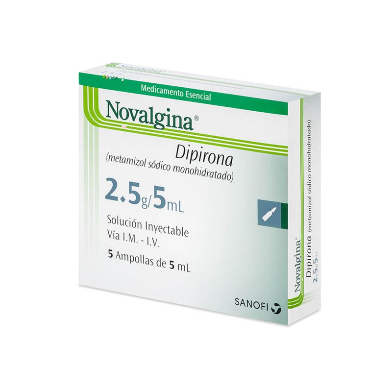 Novalgina Dipirona Sodica 2.5 Mg/5Ml Caja X 5 Ampollas Solución Inyectable Opella. Este producto es un medicamento, no exceder su consumo. Leer indicaciones y contraindicaciones, si los síntomas persisten consultar al médico.