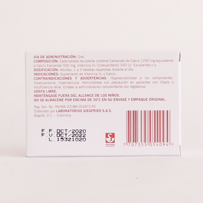 Osteocal D Calcio Carbonato 1250 Vitamina D3 330 Ui Caja X De 30 Tabletas Siegfried. Este producto es un medicamento, no exceder su consumo. Leer indicaciones y contraindicaciones, si los síntomas persisten consultar al médico.