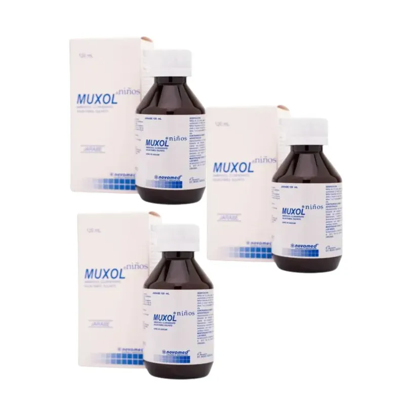 ¡Pack Ahorro 3+1! Muxol Pediátrico Sin Azúcar Jarabe Frasco 120 Ml Novamed