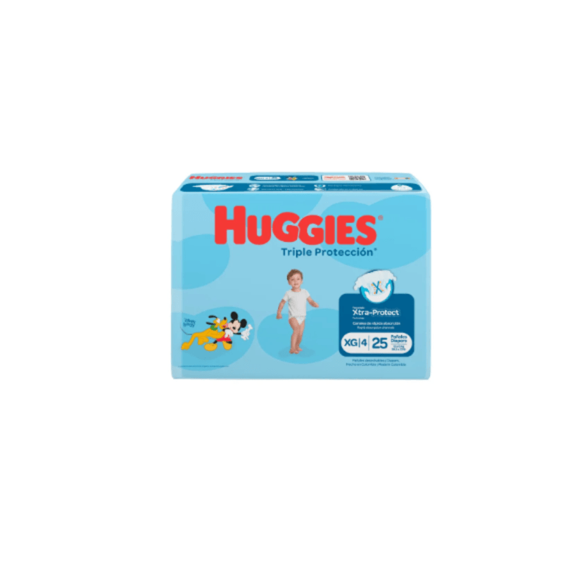 Pañal Triple Protección Etapa 4 x 25 Unidades Huggies es un paquete de 25 pañales de la marca Huggies, diseñados para bebés en la Etapa 4 (que generalmente corresponde a bebés con un peso entre 9 y 14 kg). Estos pañales ofrecen una "Triple Protección", lo que sugiere que están diseñados para brindar una alta absorción, ayudar a prevenir fugas y mantener la piel del bebé seca y protegida.