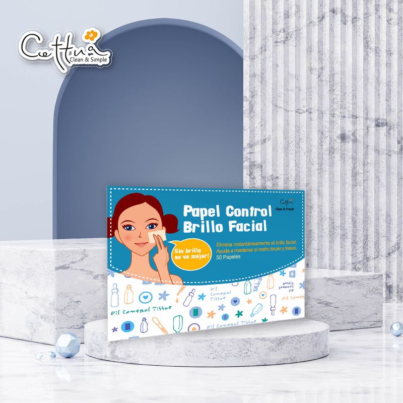 El Papel Control Brillo Facial Cettua, en paquete de 50 unidades de Bigen, es tu aliado perfecto para