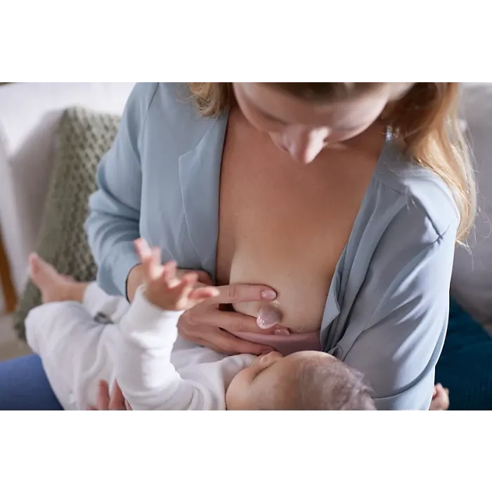 Las protecciones de pezones están diseñadas para ayudarle a dar el pecho cuando padece molestias en los pezones o problemas con el enganche. La forma de mariposa ultracompacta permite que el bebé tenga contacto con el pecho y le ayuda a mantener el vínculo