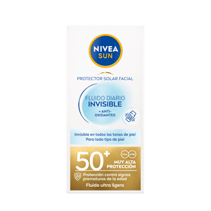 Protector Facial Nivea Sun Invisible FPS 50 x 40ml es un protector solar facial de la marca Nivea Sun con un factor de protección solar (FPS) de 50 y una presentación de 40 ml. La denominación "Invisible" sugiere que este protector solar está formulado para no dejar residuos blancos visibles en la piel después de su aplicación