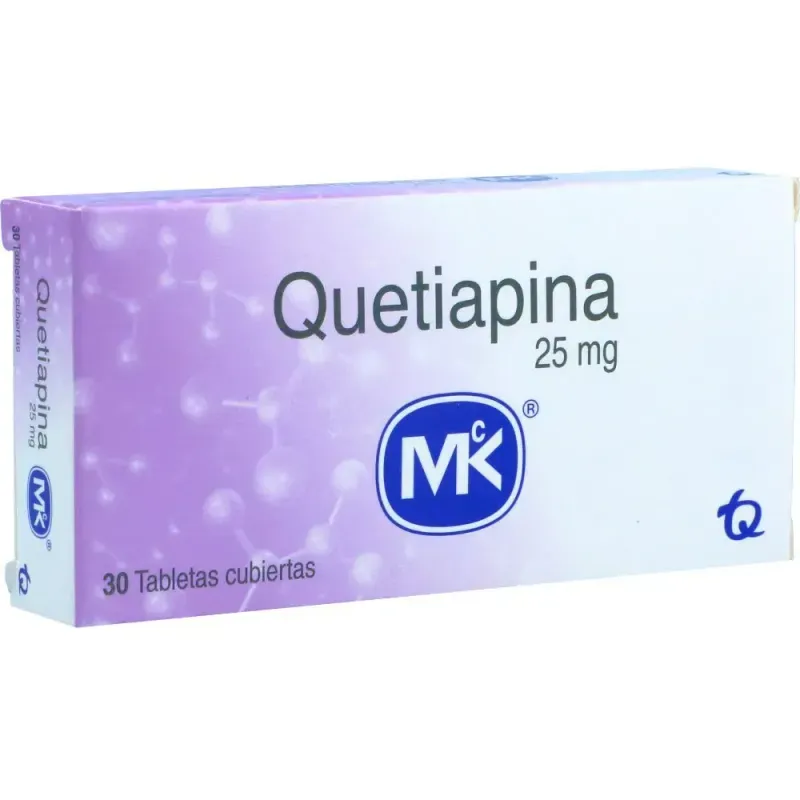 Quetiapina 25 Mg Caja X 30 Tabletas Mk. Este producto es un medicamento, no exceder su consumo. Leer indicaciones y contraindicaciones, si los síntomas persisten consultar al médico. Venta bajo fórmula médica.