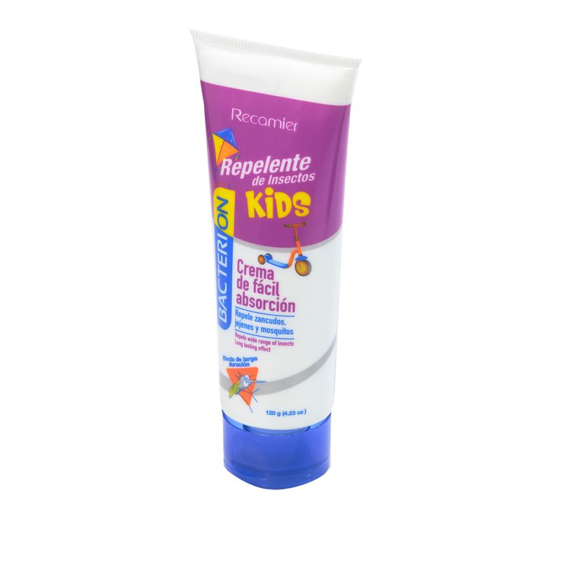 Repel Bacterion Crema Kids Tubo 120 Gramos. Crema repelente diseñada para niños, suave y efectiva.