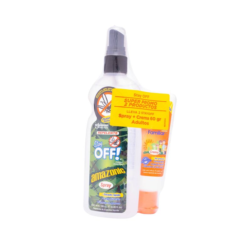 Repel Stay Off Spray Amazon Frasco 120 Ml Gratis Crema. Spray repelente para ambientes amazónicos, incluye crema para mayor protección.