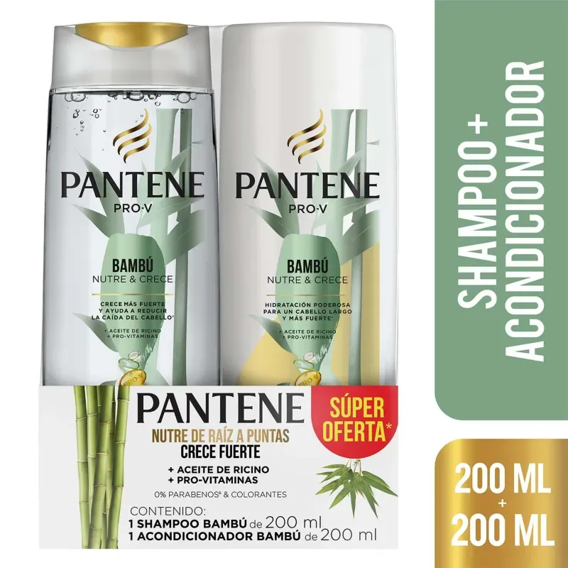 Shampoo Pantene Bambu 200ml + Acondicionador de Bambu 200ml Pantene es un set que incluye un Shampoo y un acondicionador de la línea Pantene Bambú, ambos en presentación de 200 ml. Esta línea de productos está formulada con extracto de bambú, conocido por sus propiedades fortalecedoras y revitalizantes para el cabello.
