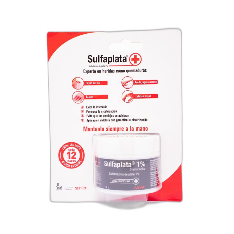 Sulfaplata 0.01 Tubo X 30 Gr Crema Tópica Bussie. Este producto es un medicamento, no exceder su consumo. Leer indicaciones y contraindicaciones, si los síntomas persisten consultar al médico.