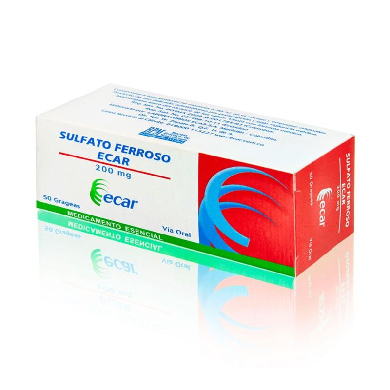 Sulfato Ferroso 200 Mg Caja X 50 Grageas Ecar