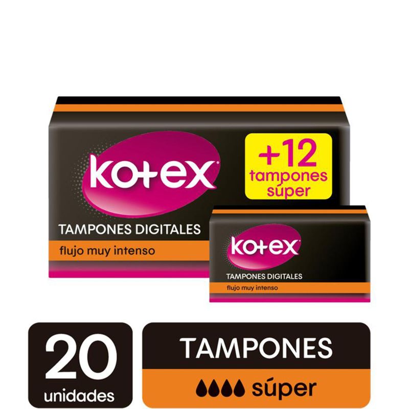 Tampones Kotex Blue Súper Caja X 32 Unidades Pague 20 Lleve 32