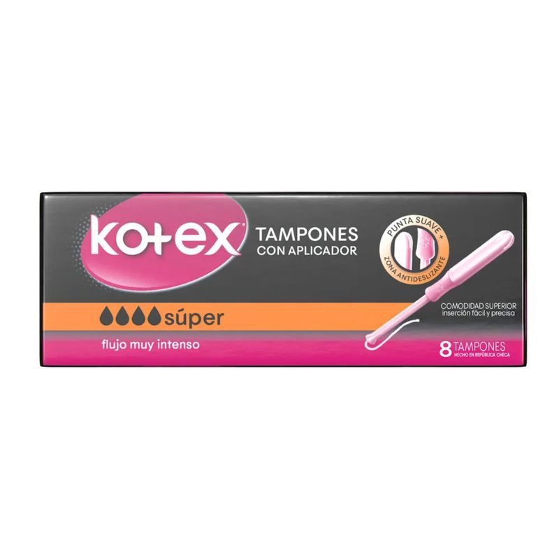 Los Tampones Kotex Súper Con Aplicador en caja de 8 unidades te brindan una