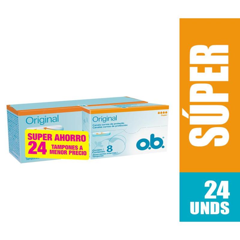 Los tampones o.b. original súper tienen canales curvos que son diseñados para dirigir el flujo abundante de una manera más efectiva hacia el centro del tampón, dándote protección confiable para evitar filtraciones. Los tampones o.b. te brindan hasta 8 horas de protección y absorben instantáneamente el flujo.