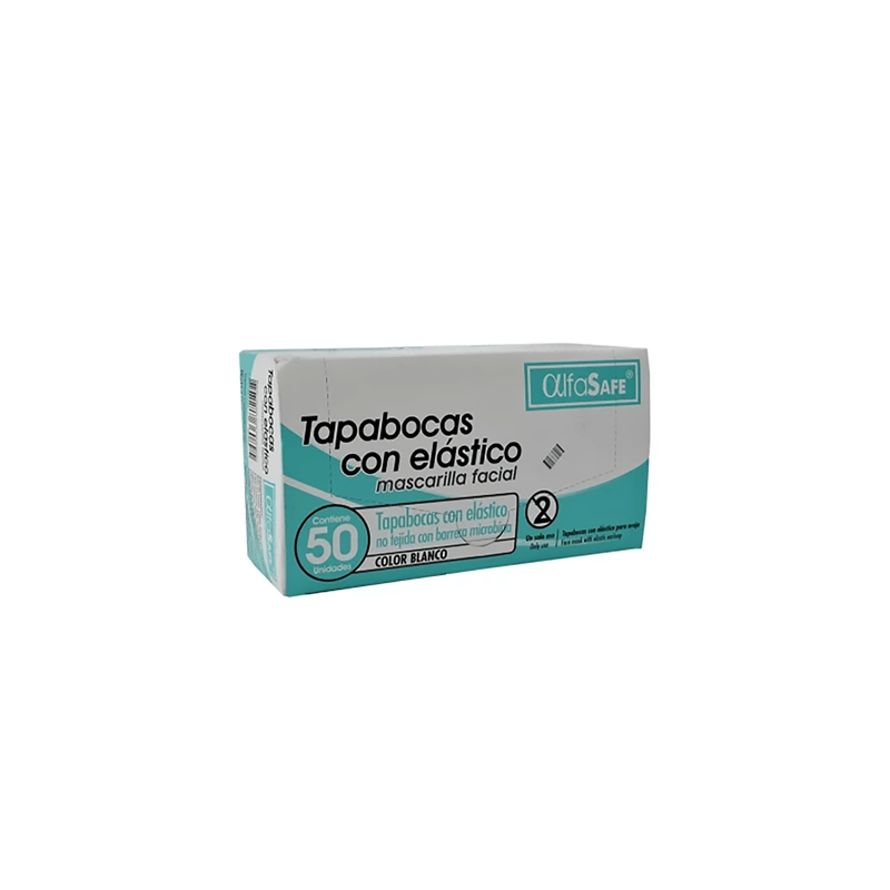 Tapabocas Color Blanco Con Elástico Caja X 50 Unidades Alfa Safe