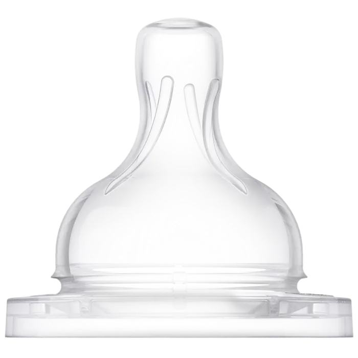 Nuestra tetina anti cólicos está diseñada para brindar una alimentación sin interrupciones. El aire se libera hacia el biberón y lejos de la barriguita del bebé. La textura estriada evita la contracción de la tetina y reduce las interrupciones en la alimentación y la incomodidad.