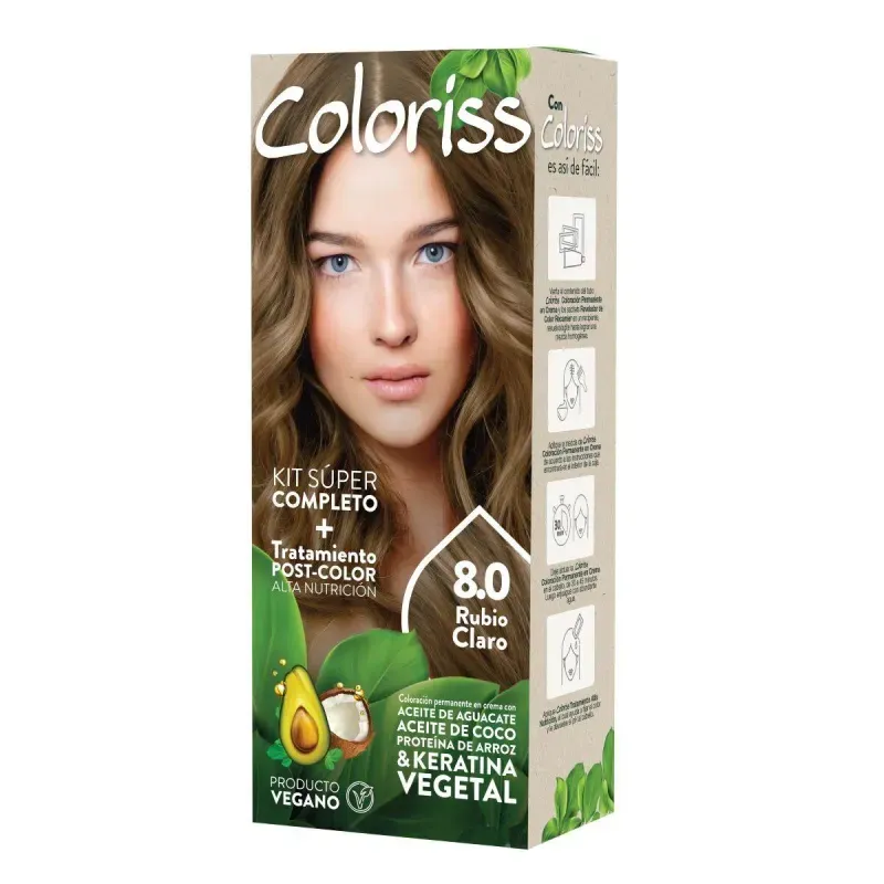 Tinte Coloriss Rubio Claro Estuche 8 Recamier. Formulado para transformar tu look mientras cuidan y nutren tu cabello.
