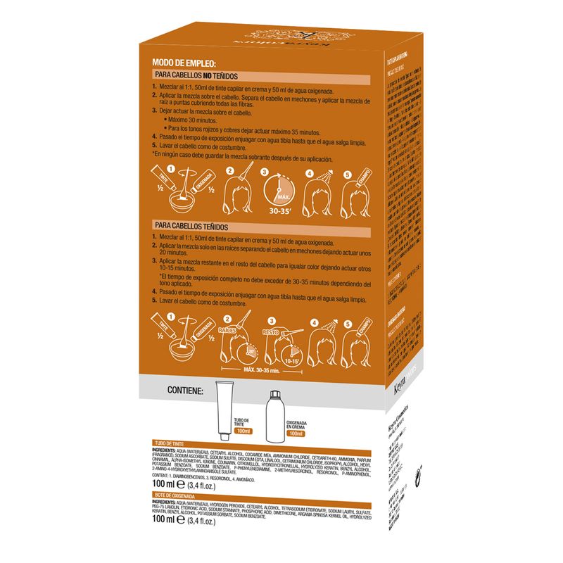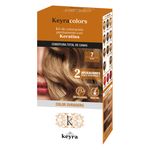 Tinte Keyra Kit Rubio 7 X 100ml Bigen Este es un kit de tinte permanente para el cabello de la marca Keyra en el tono Rubio (nivel 7). El kit incluye el tubo de crema colorante de 100 ml, el activador (agua oxigenada), guantes y un folleto de instrucciones para la aplicación del tinte en casa, proporcionando un color rubio estándar.