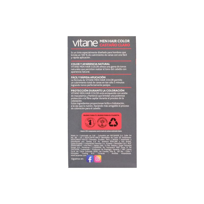 Tinte Vitane Men Castano Claro 25 Gr Recamier. Formulado para transformar tu look mientras cuidan y nutren tu cabello.