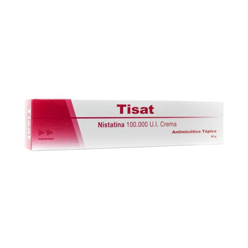 Tisat Nistatina 100.000 Ui Tubo X 30 Gr Crema Tópica Profma. Este producto es un medicamento, no exceder su consumo. Leer indicaciones y contraindicaciones, si los síntomas persisten consultar al médico. Venta bajo fórmula médica.