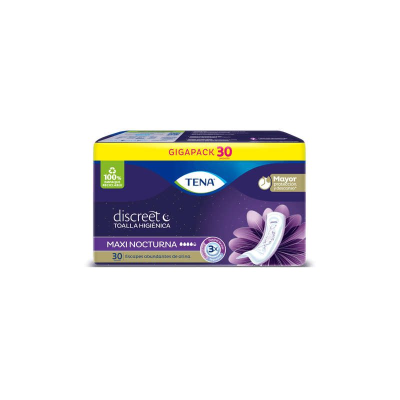 Toalla Higiénica Tena Discreet Maxi x 30 Unidades Familia es un paquete de 30 toallas higiénicas de la marca Tena, específicamente de la línea Discreet Maxi. Estas toallas están diseñadas para la incontinencia urinaria, ofreciendo una absorción superior y discreción.