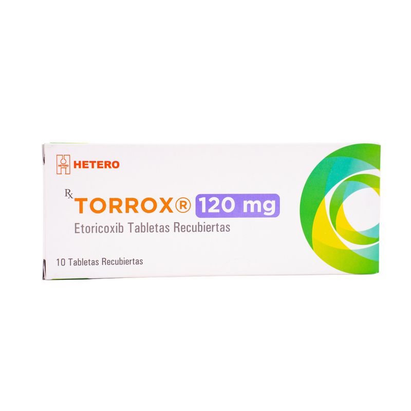 Torrox Etoricoxib 120 Mg Caja X 10 Tabletas Hetero. Este producto es un medicamento, no exceder su consumo. Leer indicaciones y contraindicaciones, si los síntomas persisten consultar al médico. Venta bajo fórmula médica.