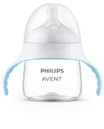 El kit de entrenamiento natural permite que su bebé se acostumbre con mayor facilidad a su primer vaso. Las cómodas asas ayudan a que su bebé sostenga el biberón por sí mismo mientras bebe de la conocida tetina.