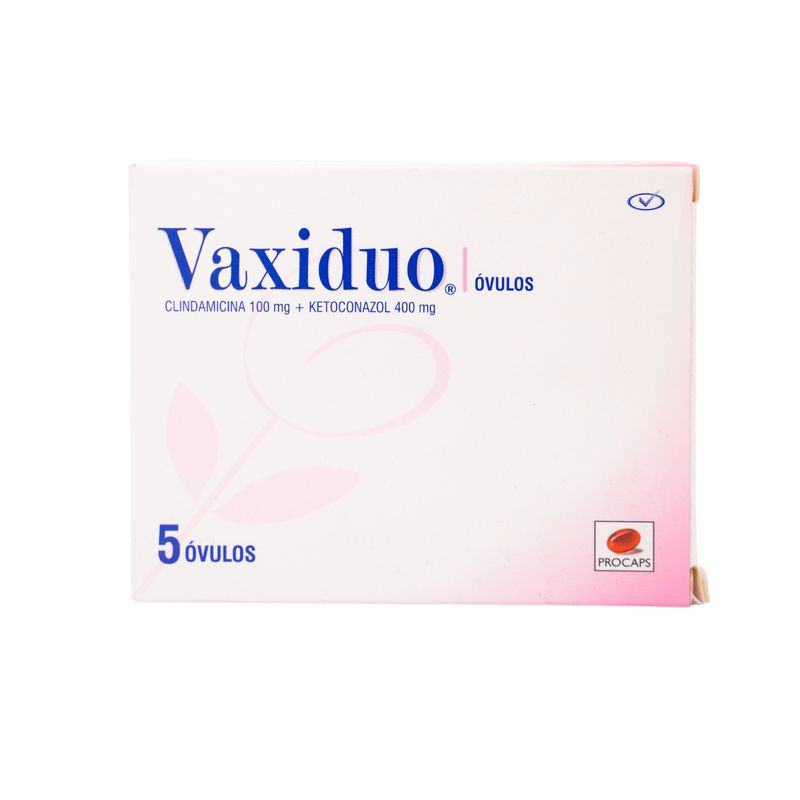 Vaxiduo Clindamicina Ketoconazol 100 Mg/400 Mg Caja X 5 Óvulos Procaps. Este producto es un medicamento, no exceder su consumo. Leer indicaciones y contraindicaciones, si los síntomas persisten consultar al médico. Venta bajo fórmula médica.